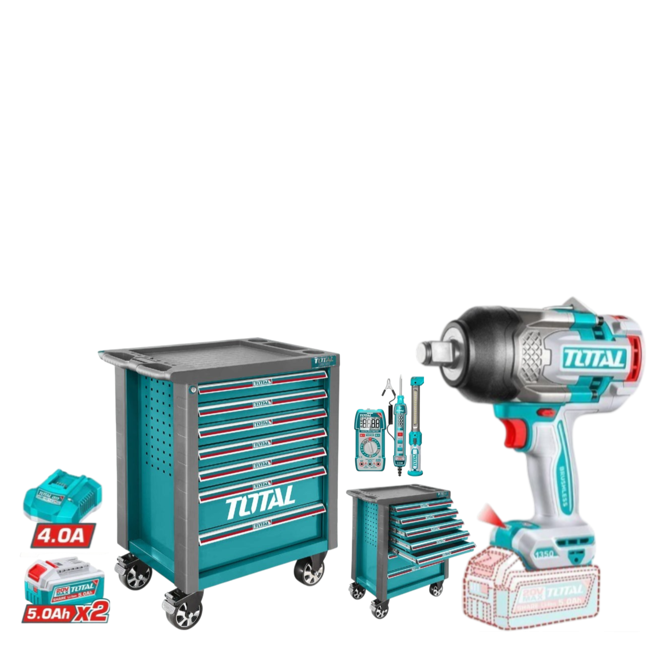 Ver todos los detallesCombo del mes Total 20V Llave de impacto 1/2” 850Nm sin escobillas. Lámpara de trabajo 20V LED 24W. Licuadora de mano 60W 7.4V Incluye Batería y C...