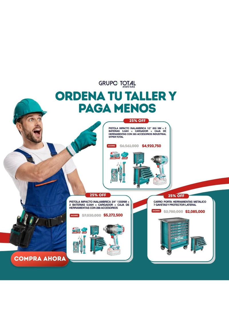 Ver todos los detallesCombo del mes Total 20V Llave de Impacto Inalámbrica 500Nm , Ratchet de Conducción Inalámbrico 65Nm y Lampára de Trabajo 3.5W POCAS UNIDADESLlave ...