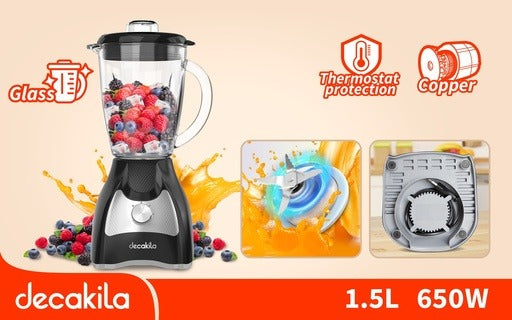 Ver todos los detallesDescripciĂłnLicuadora con una potencia de 650 WCapacidad de 1.5 litrosJarra de vidrioControl frontal de 2 velocidades con pulsoCuerpo de plĂĄstico co...