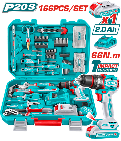Ver todos los detalles-INCLUYE 1 BATERÍA 2.0AH + CARGADOR + 163 HERRAMIENTAS PARA TRABAJO COMPLETO. -FUNCIÓN PERCUTORA IDEAL PARA MADERA, METAL Y MAMPOSTERÍA LIGERA. -DI...
