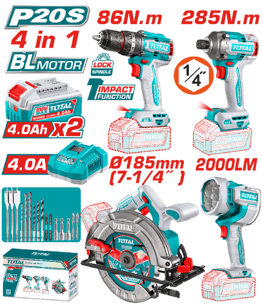 Ver todos los detallesCombo Total 20V Set 4 Herramientas InalámbricasAmoladora Angular Inalámbrica (UTAGLI27153):-Motor sin escobillas-Voltaje: 20 V-Potencia máxima de ...
