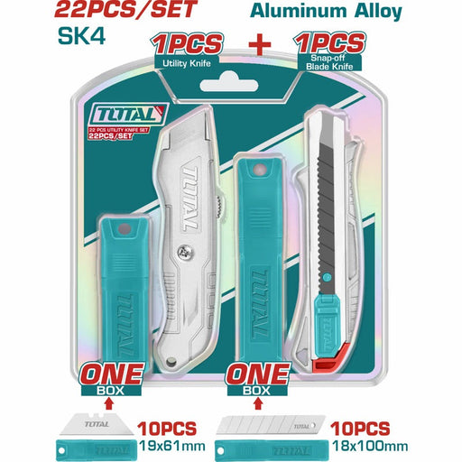 Cuchillos multiusos. Set de 22 piezas-Incluye:-1 cuchillo multiusos de aleación de aluminio.-1 cuchillo con cuchilla desmontable de 18 mm de aleac...