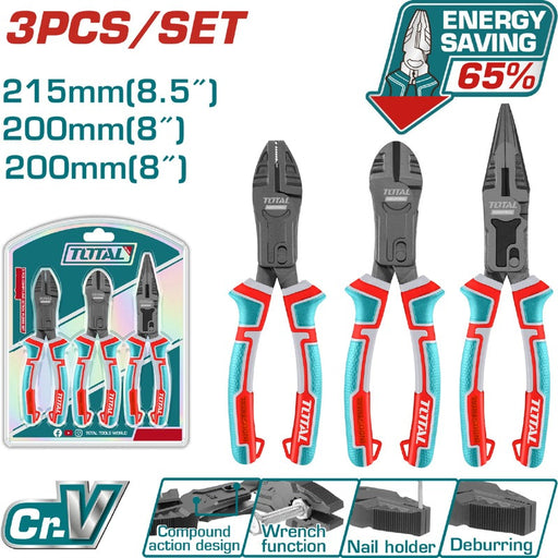JUEGO DE ALICATE X 3 PIEZAS CROMO VANADIUM INDUSTRIAL TOTAL