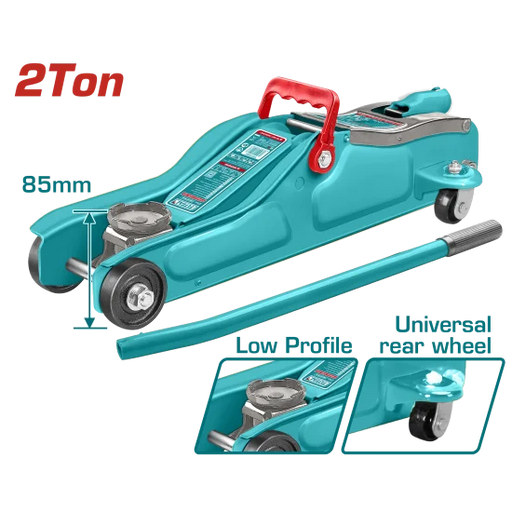 GATO HIDRAULICO (2 TON) / TIPO CAIMAN (TOTAL) 2 toneladasAltura mínima: 85 mmAltura máxima: 330 mmCarrera: 245 mmPeso neto: 10,5 kg