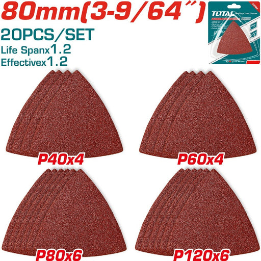 Láminas de Lijado Delta Set de 20 piezas.-80mm.-P40x4 P60x4 P80x6 P120x6.-Óxido de Aluminio.-Compatibles con TS3006 y TMLI2001.-20% más efectivo q...