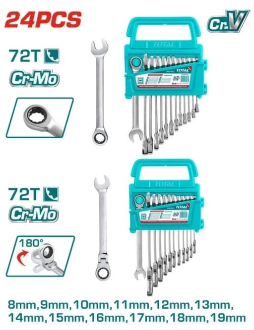 LLAVE MIXTA CON RACHE 8 - 19 MM JUEGO X 12 PZS INDUSTRIAL SUPER TOTAL