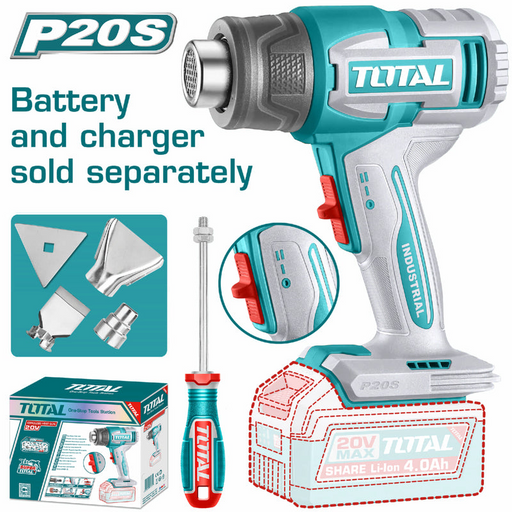 Ver todos los detallesPISTOLA CALOR INALAMBRICA 20V + 4 BOQUILLAS Y RASCADOR, BATERIA Y CARGADOR NO INCLUIDOS