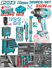 5 llaves de estrella acodadas: 20 x 22, 21 x 23, 24 x 27, 25 x 28, 30 x 32. 9 llaves hexagonales: 1.5, 2, 2.5, 3, 4, 5, 6, 8, 10